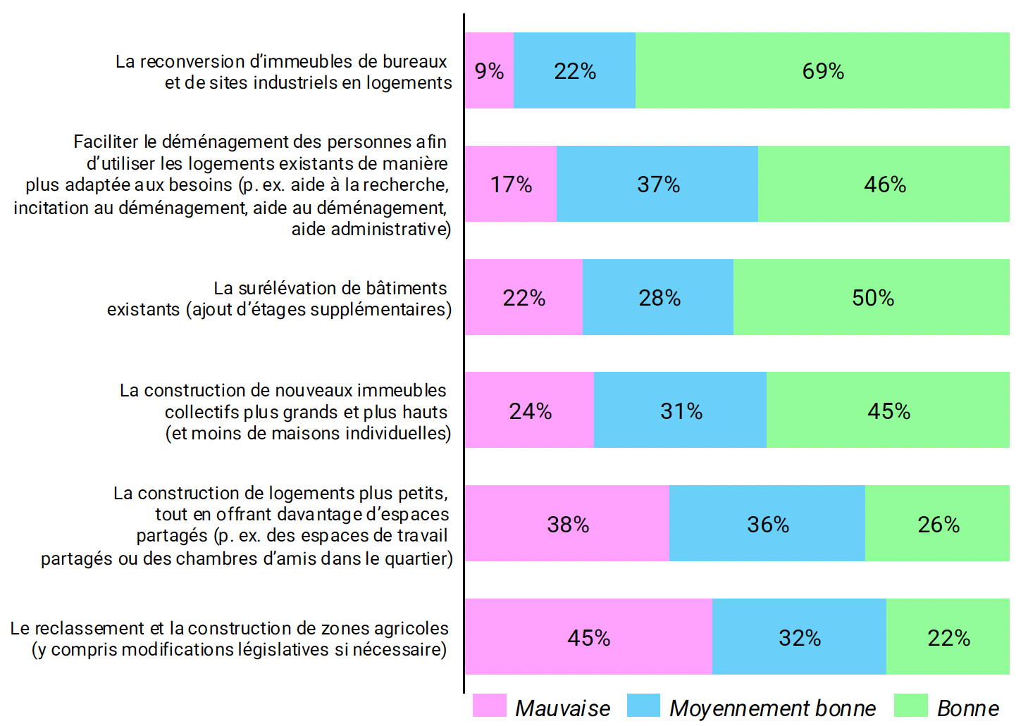 «Dans quelle mesure considérez-vous les mesures suivantes comme étant fondamentalement de bonnes solutions pour offrir des logements à une population croissante? »